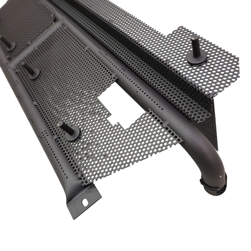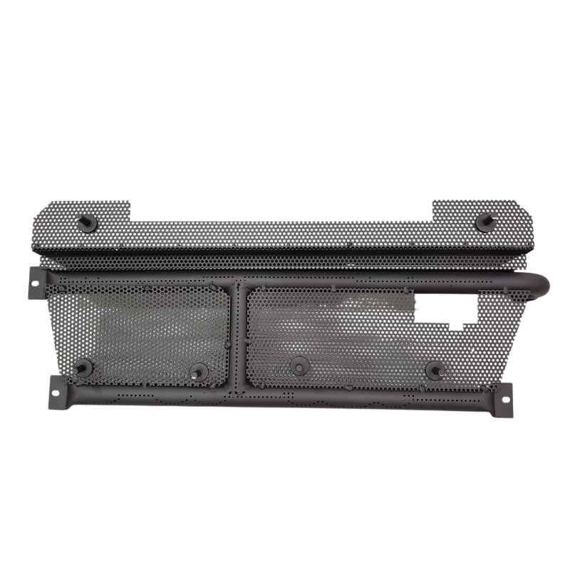 The burner tube assembly distributes Natural Gas (NG) evenly across the firebox to create consistent flame patterns. This critical component ensures complete combustion and prevents dangerous gas buildup by maintaining proper gas flow and pressure throughout the burner system.